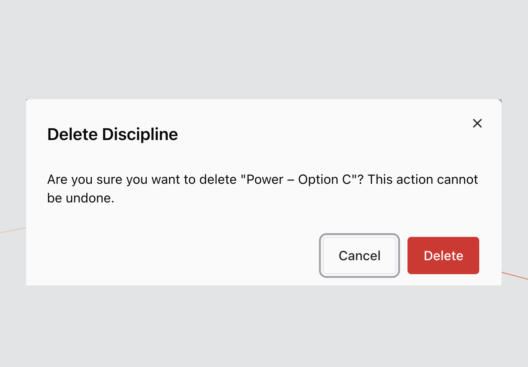 - Select the ellipsis (•••) menu on the Discipline you wish to delete.