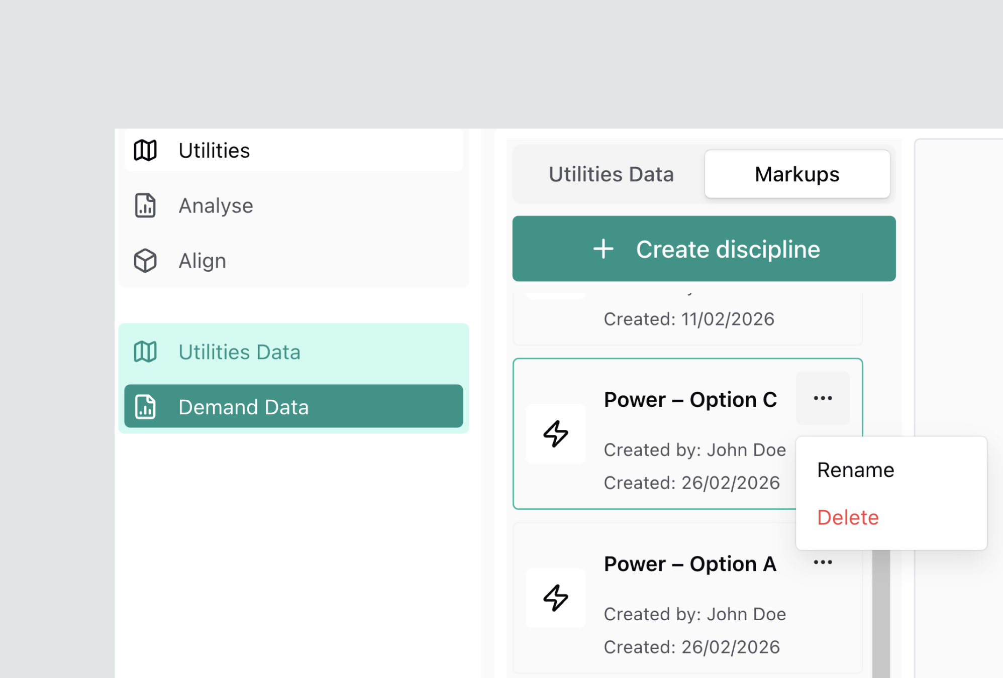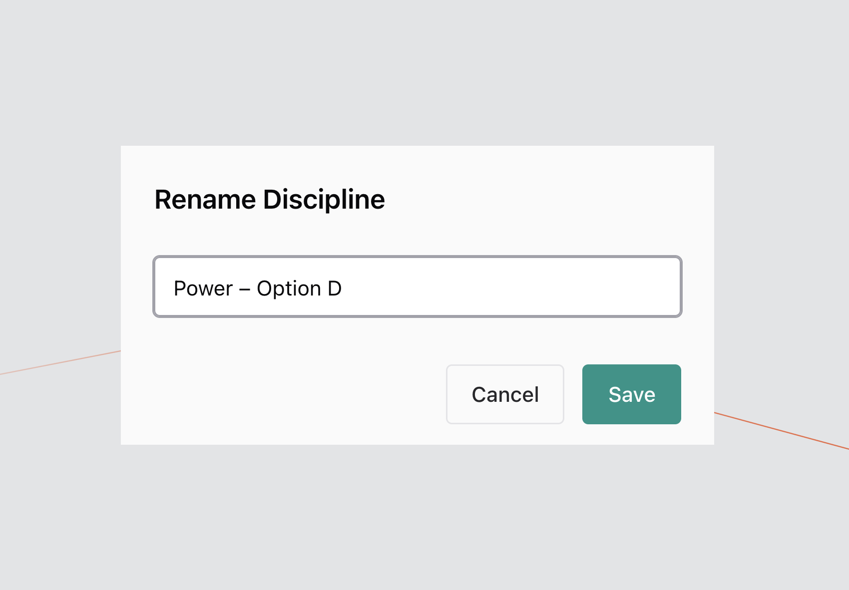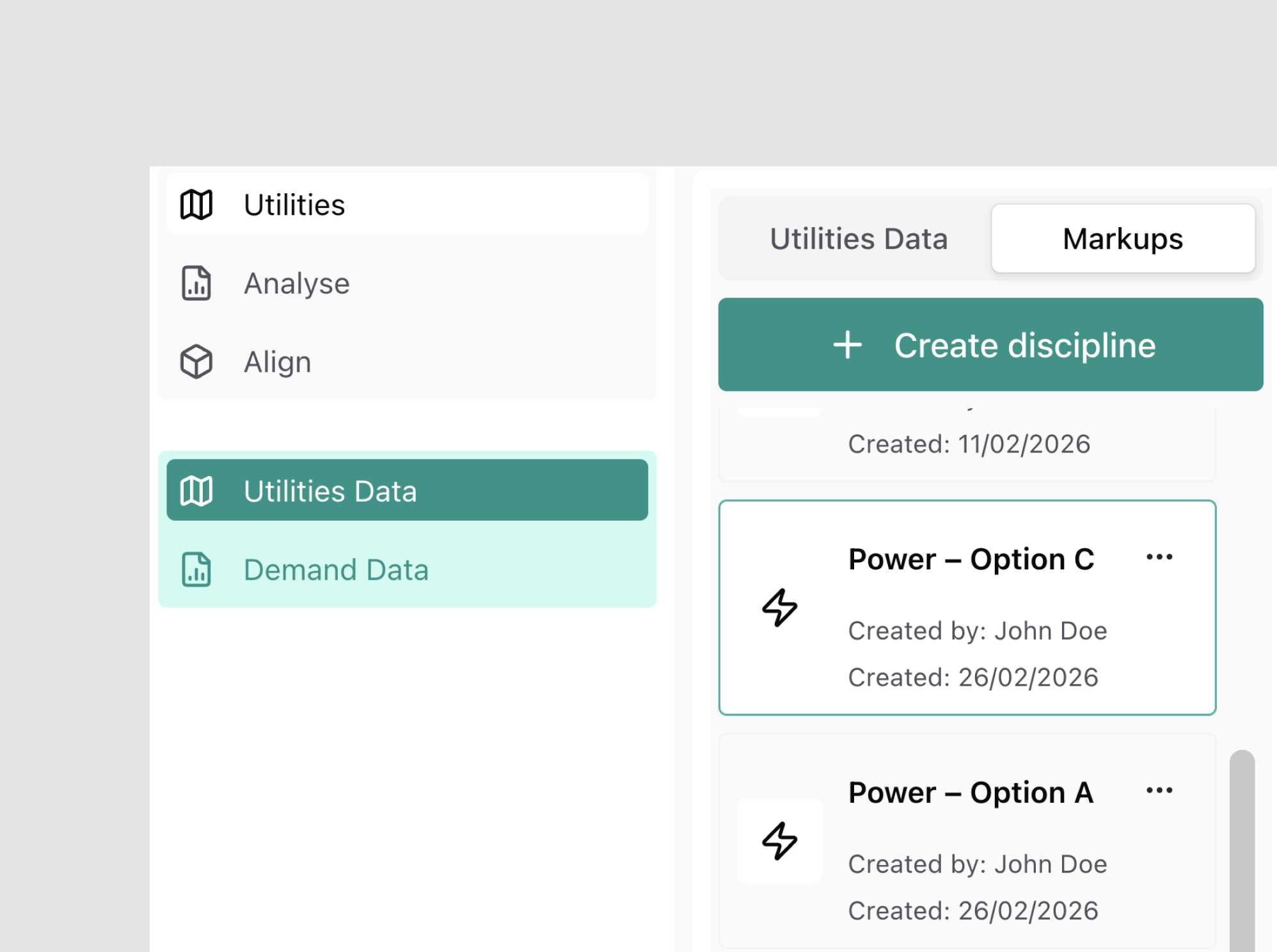 A Discipline represents a specific infrastructure category (e.g. Power, Water, Sewer) within a Design Option.