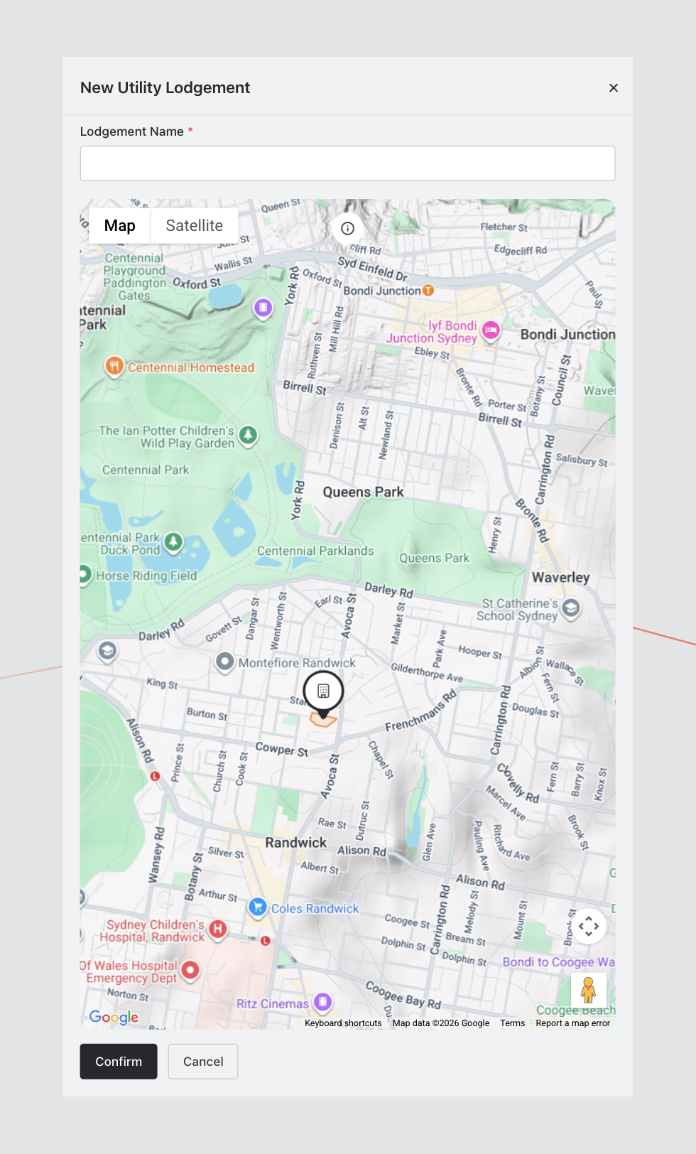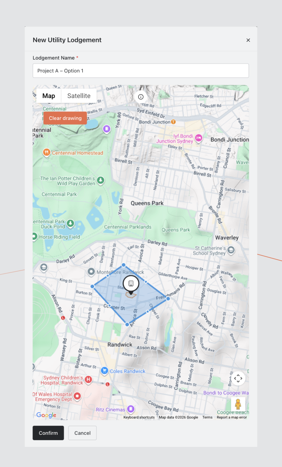 A Lodgement defines the project boundary used for infrastructure and service analysis within the Utilities tool.