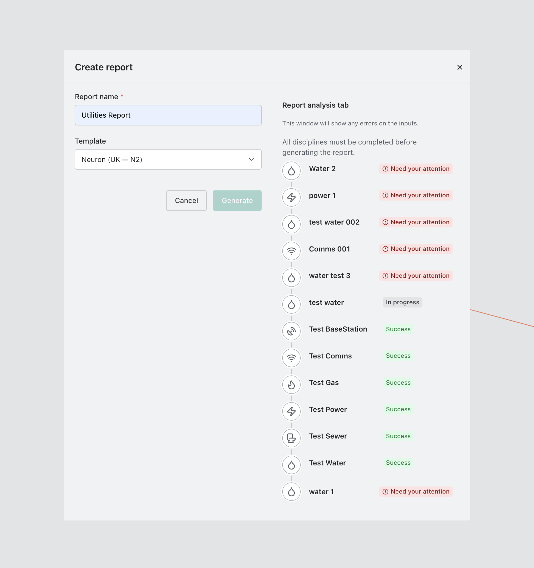 - Resolve any validation errors shown in the Report modal.