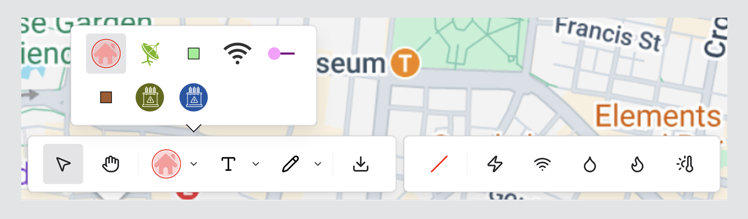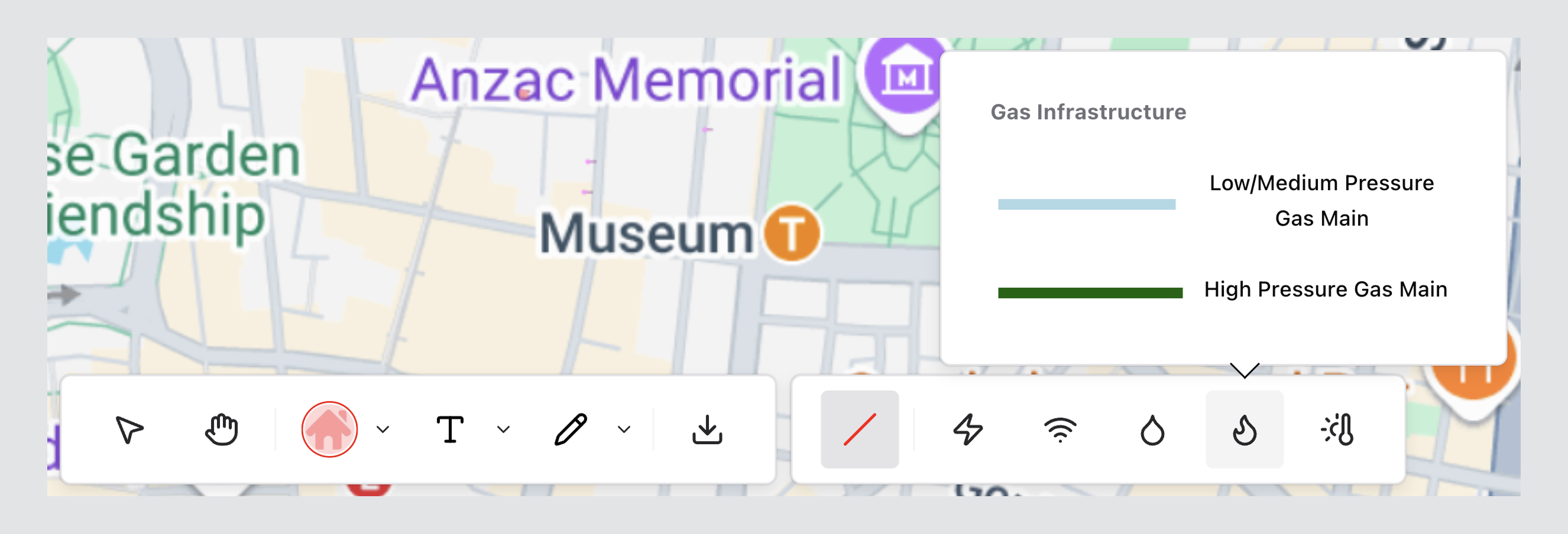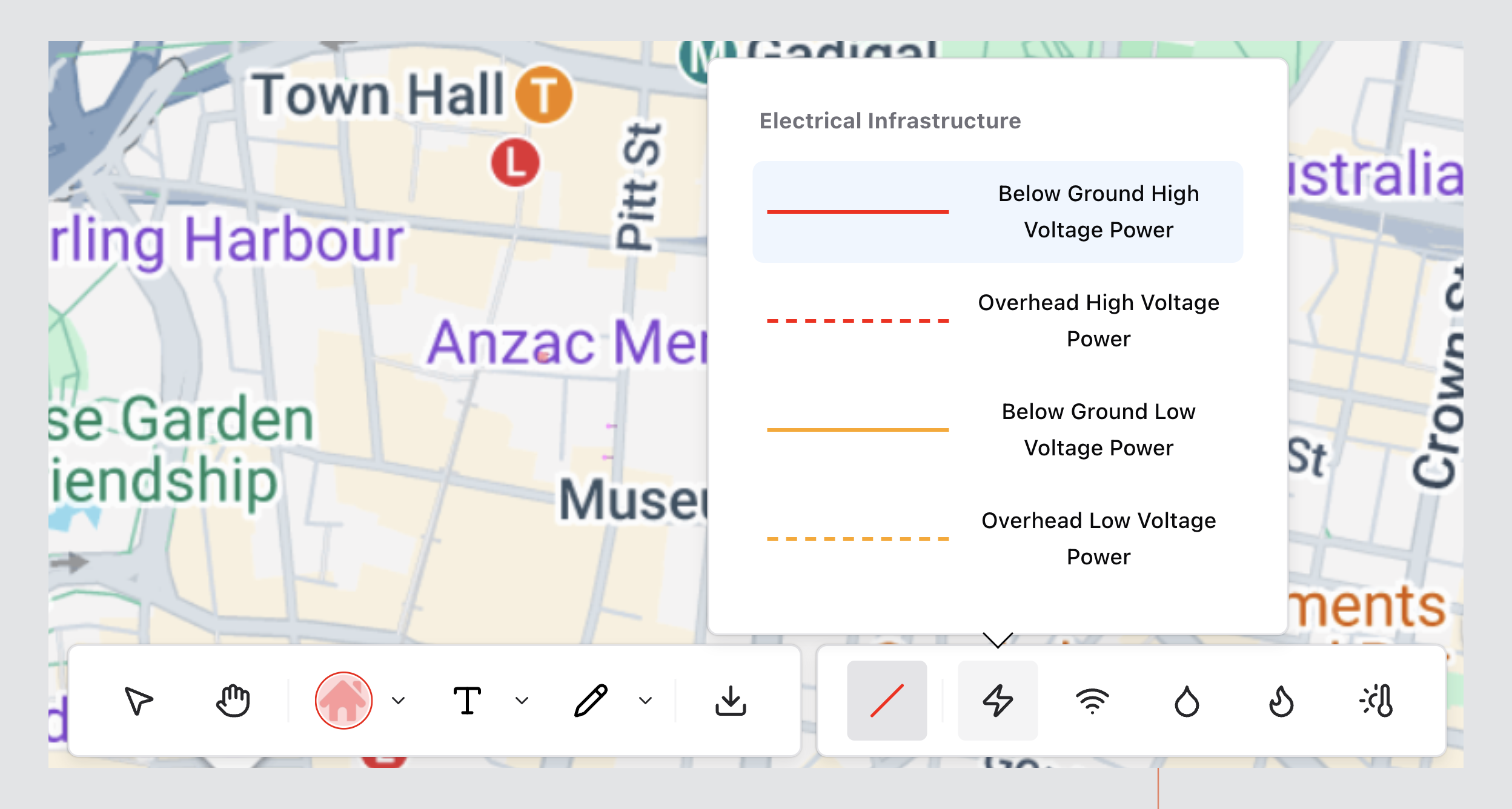 Markup Tools enable users to annotate, classify, and visually communicate infrastructure information directly within the Utilities canvas.