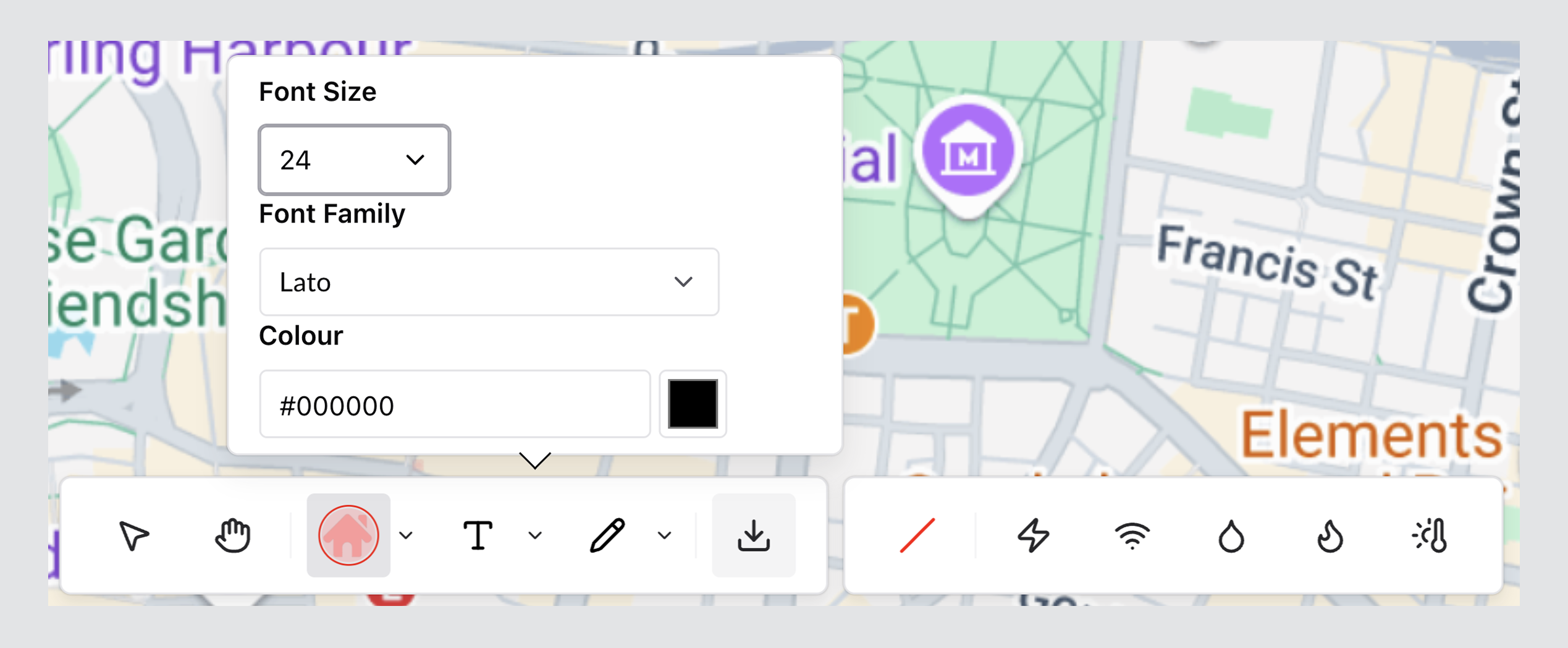 When the Text Tool is selected, formatting options can be adjusted (such as size, font, and colour).