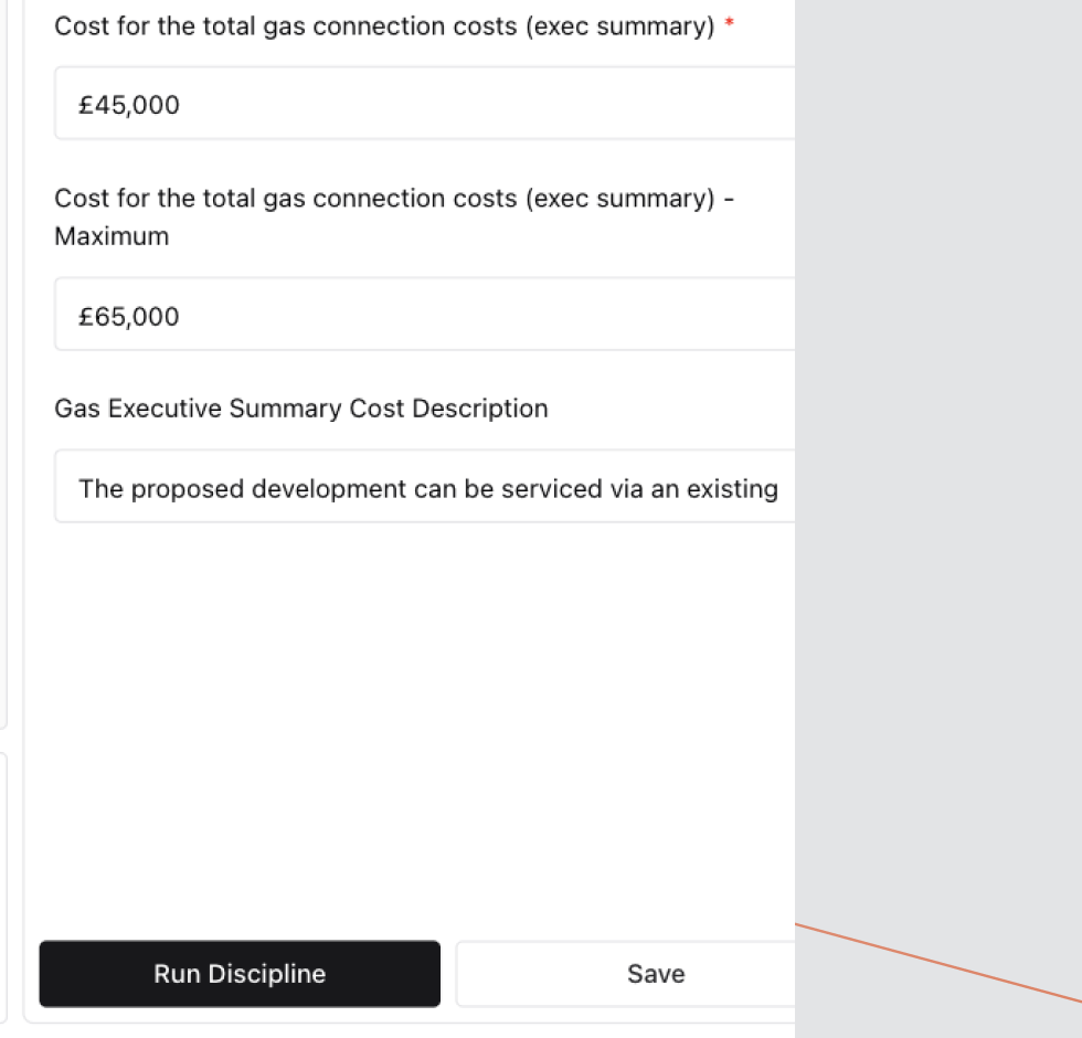 Each Discipline Type (e.g. Power, Water, Gas, Sewer, Comms, BaseStation) contains different input fields relevant to that infrastructure category.
