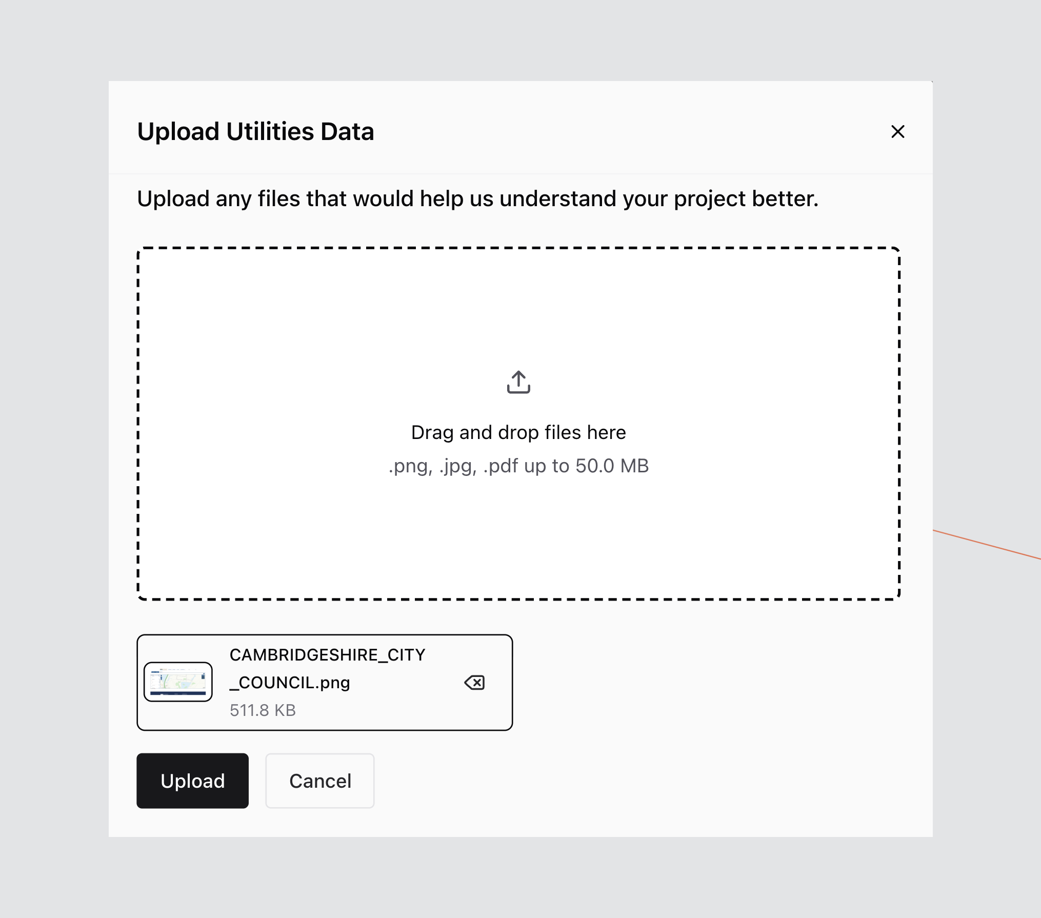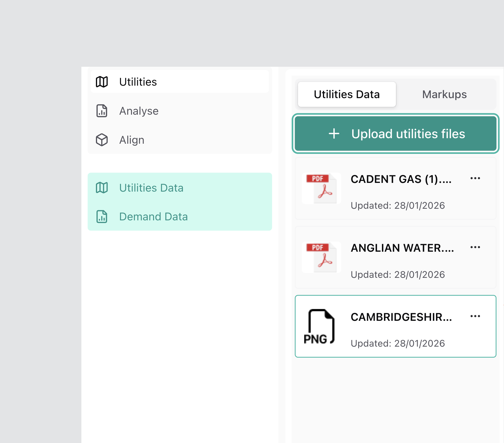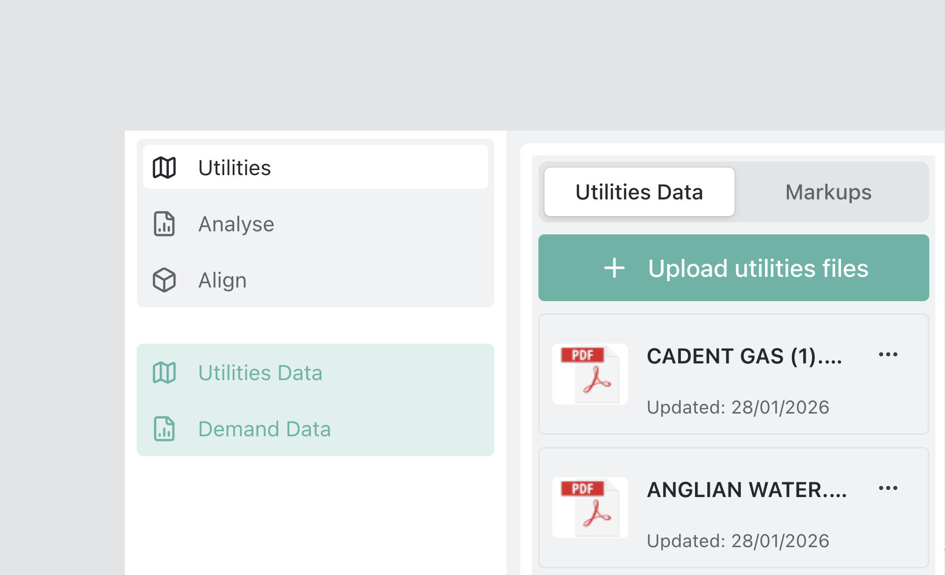 Utilities Data allows you to upload supporting infrastructure documents and images for use within the Utilities workflow.